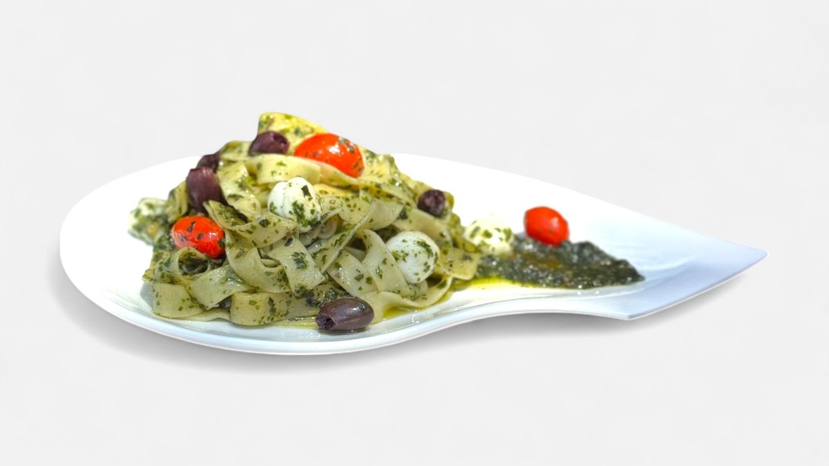 מבוסס בזיליקום טרי, כדורי מיני מוצרלה, שמן זית, אגוזים, שום וגבינת פרמזן. מנה ארומטית וקלילה