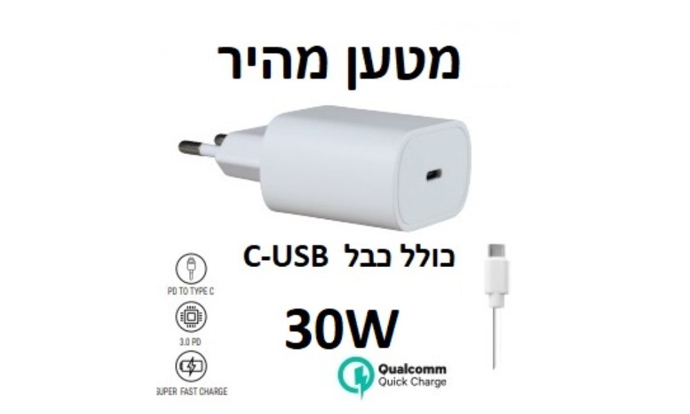 מטען מהיר לסמארטפון 30W עם כבל USB-C