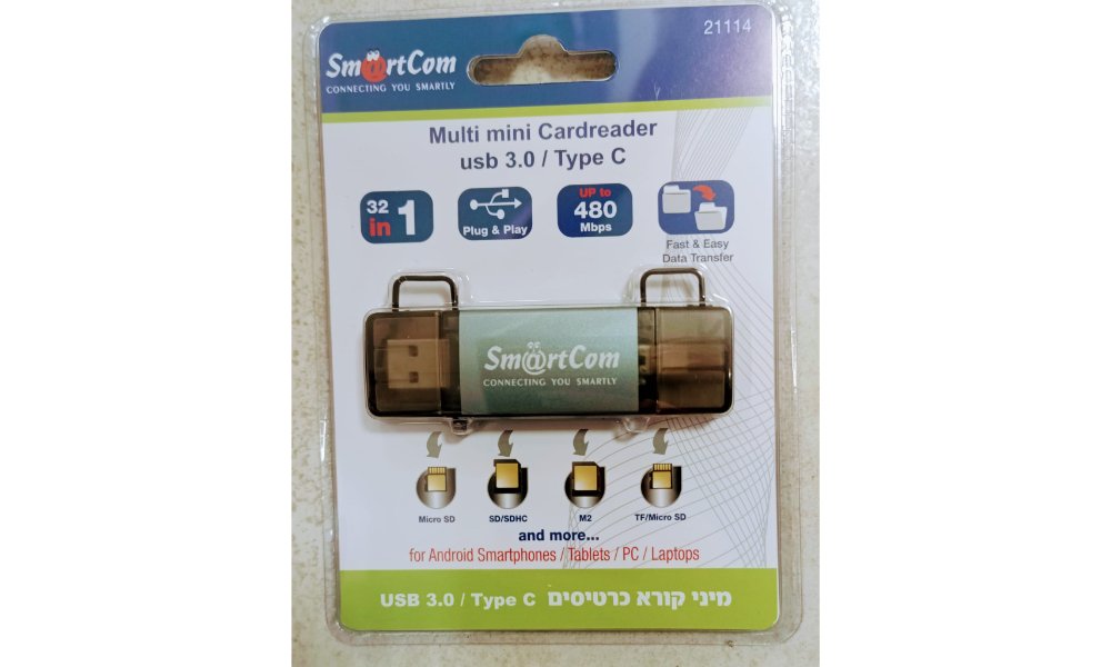קורא כרטסים USB-C/A- כרטיסי זיכרון MICRO SD -SD CARD READER