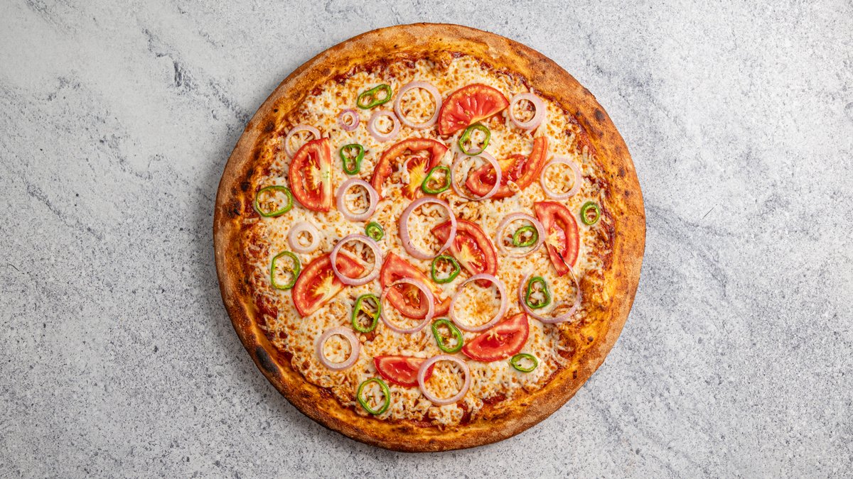 רוטב עגבניות טרי, גבינת מוצרלה, פלפל חריף, עגבנייה ובצל