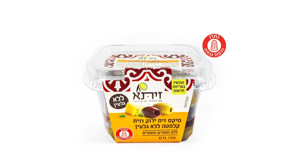 מיקס זית ירוק וזית קלמטה ללא גלעין עם שמן זית כתית מעולה