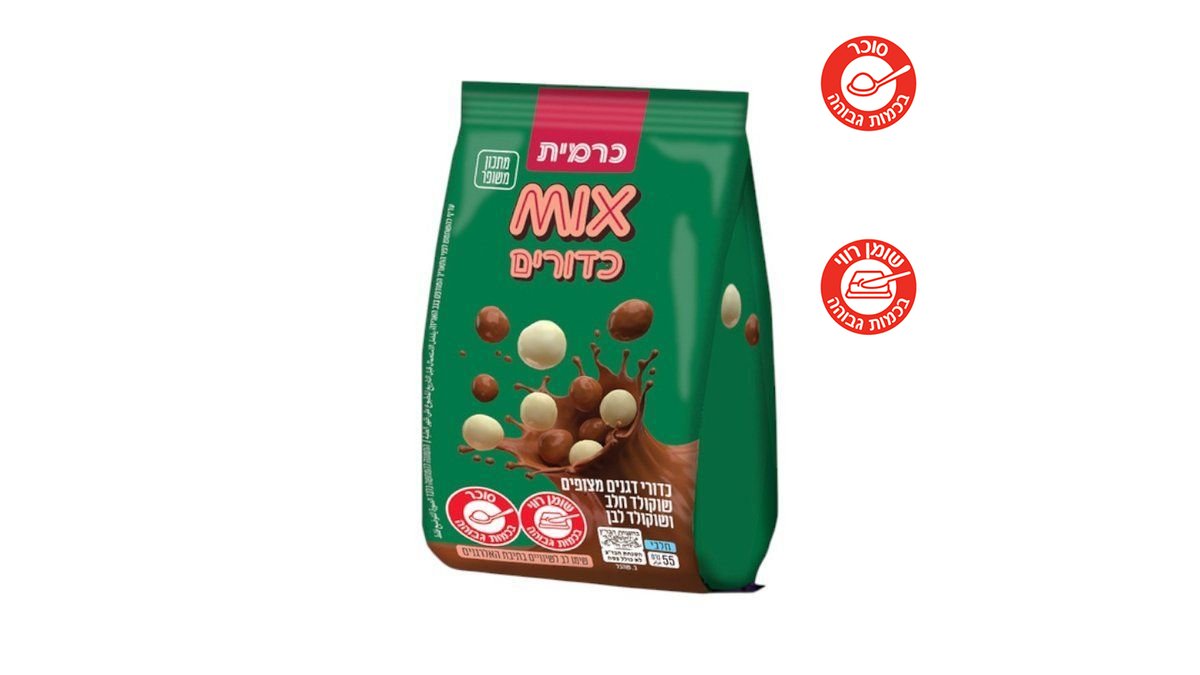 מיקס כדורים מצופה שוקולד חלב ולבן כרמית 55 גרם