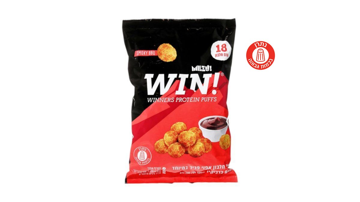 WIN חטיף כדורי פאף 18 גרם חלבון פריכים במיוחד, בטעם ברביקיו 110 גרם
