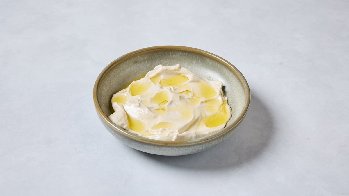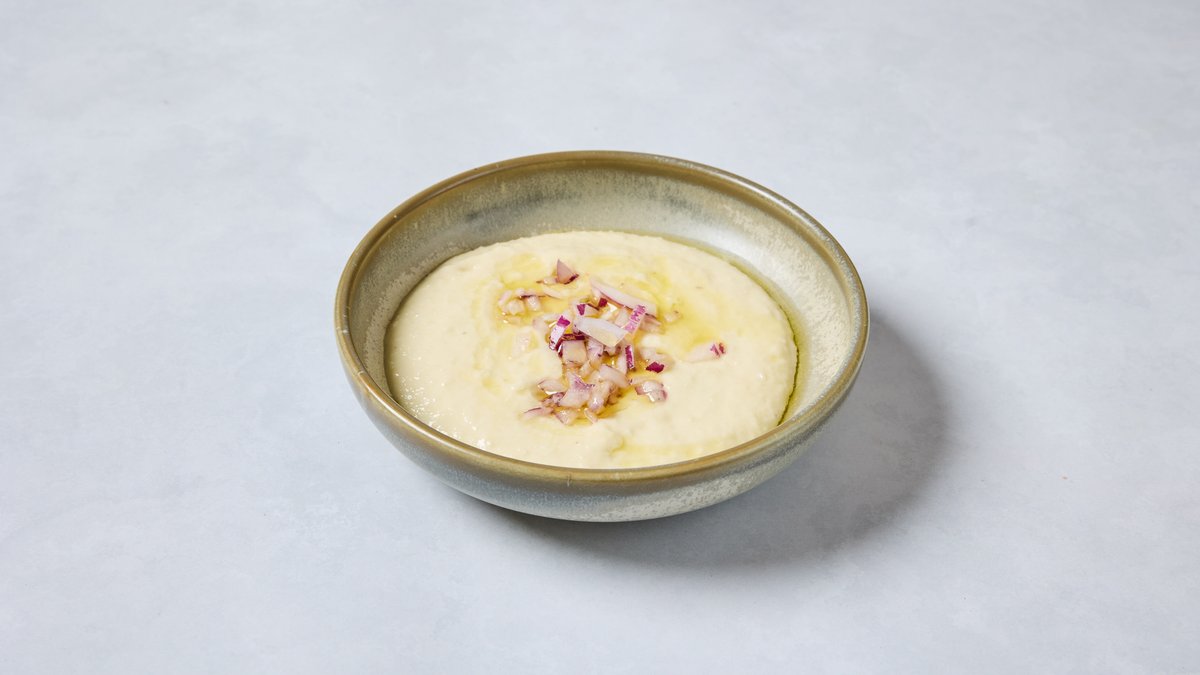ממרח שקדים יווני מוגש עם בצל סגול ושמן זית