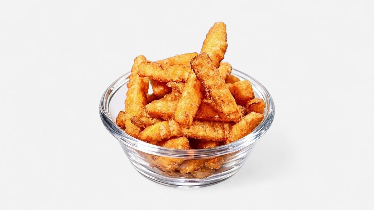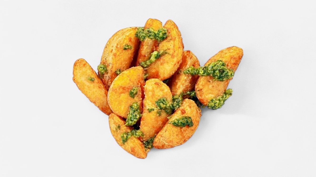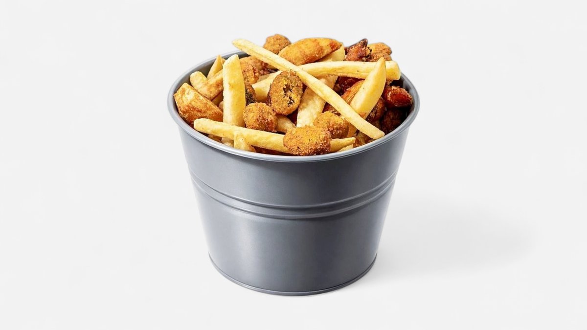 קומבינציה של צ׳יפס, פוטטו וצ׳יפס בטטה. וזתים מתוגנים .