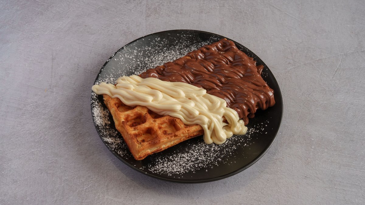 וופל בלגי עם נוטלה נמסה מוגש עם רטבים ותוספות לבחירה