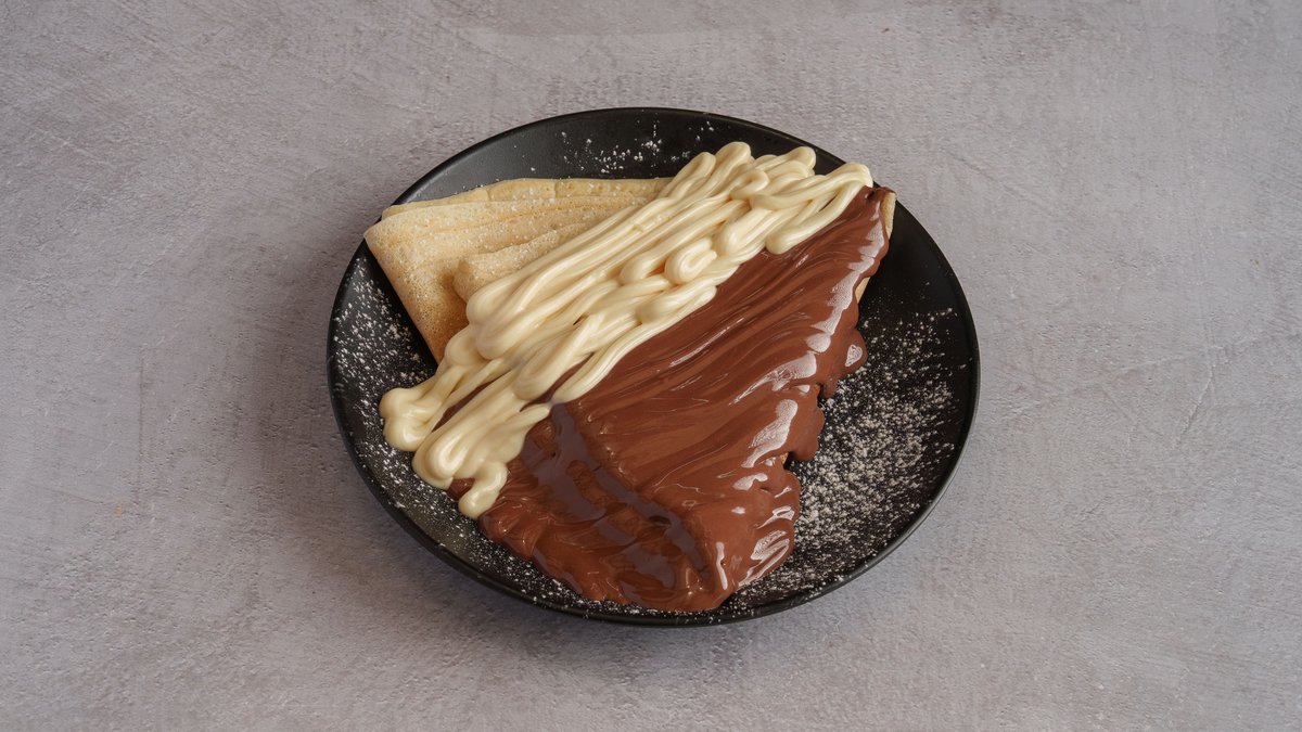 קרפ במילוי נוטלה ושוקלד לבן מוגש עם רטבים תוספות לבחירה