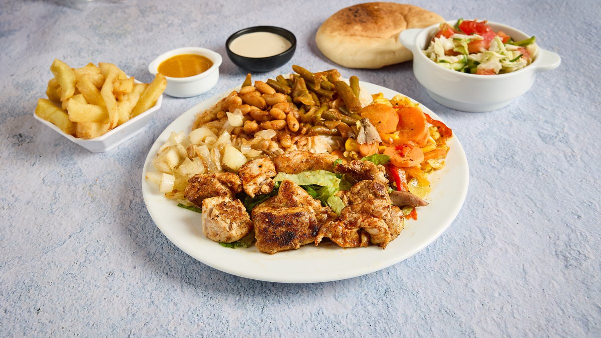 המנות מוגשות עם תוספות, סלטים ולחם לבחירה