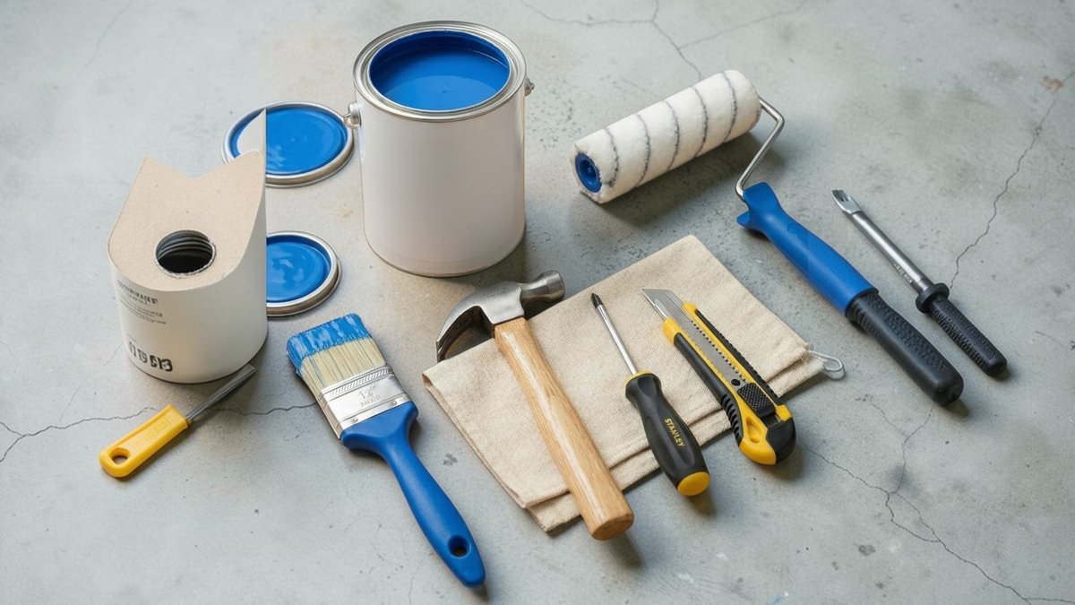 Tools, electrical accessories, color, glue, batteries.