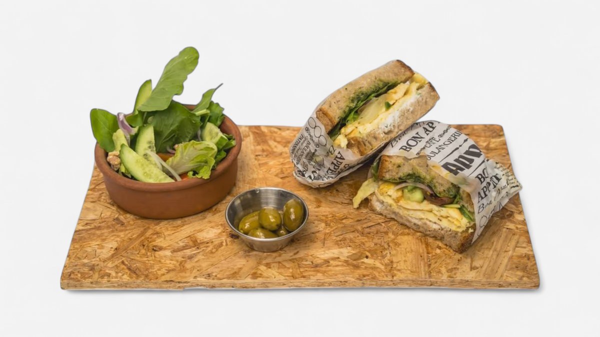 כריך סלט ביצים, פורל כבוש ובצל ירוק