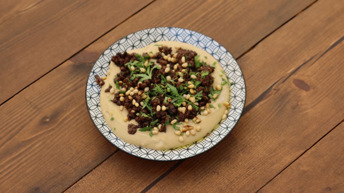 חומוס בשר טלה בבישול ארוך, מתובל ביין ותבלינים חמים וטעימים מגיע עם פיתה, חמוצים, סחוג, בצל ואהבה ***שימו לב התמונה אינה ממחישה את הבשר שמגיע במנה***