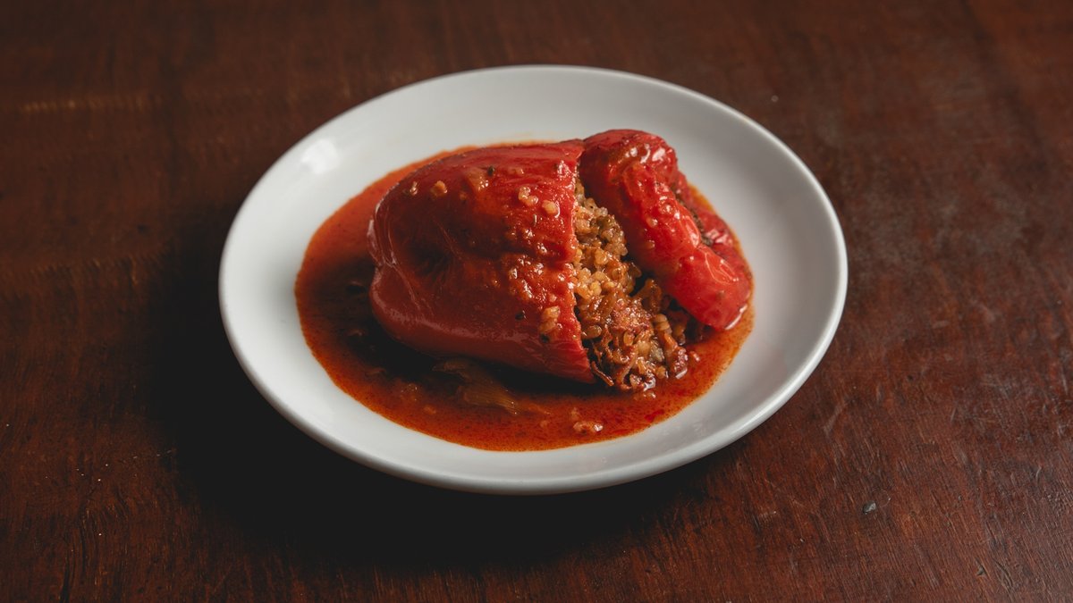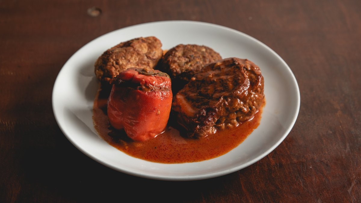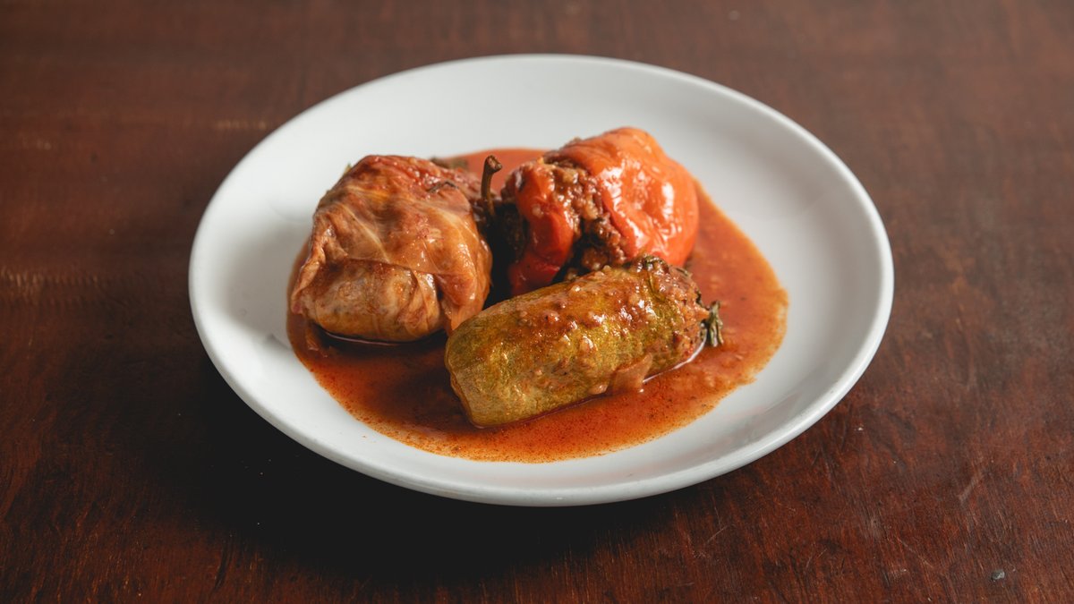 ירקות במילוי אורז ועדשים (כרוב, פלפל, קישוא ובצל) מנה טבעונית