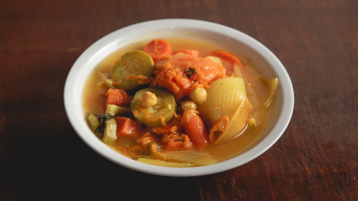 מרק טבעוני של סבתא עם ירקות חתוכים
