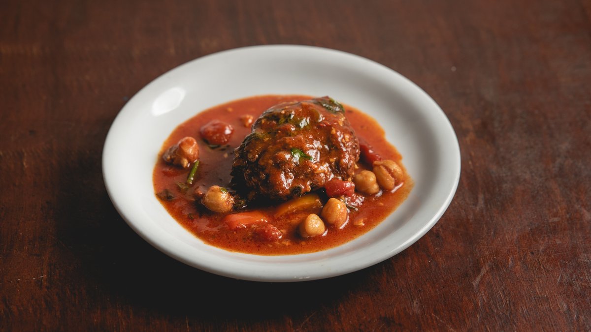 1 יח׳ - קציצת דג עם ירקות ברוטב חריף לצד טחינה , לימון כבוש , ולחם