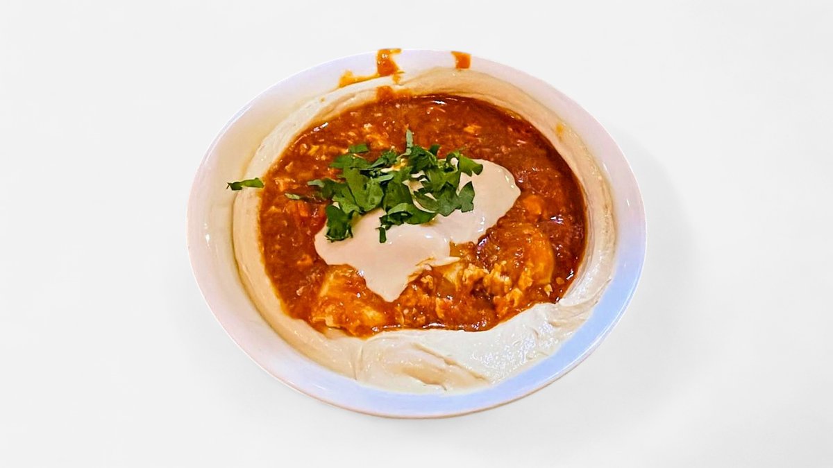 כל מנת חומוס מגיעה עם 2 פיתות, חמוצים וחריף