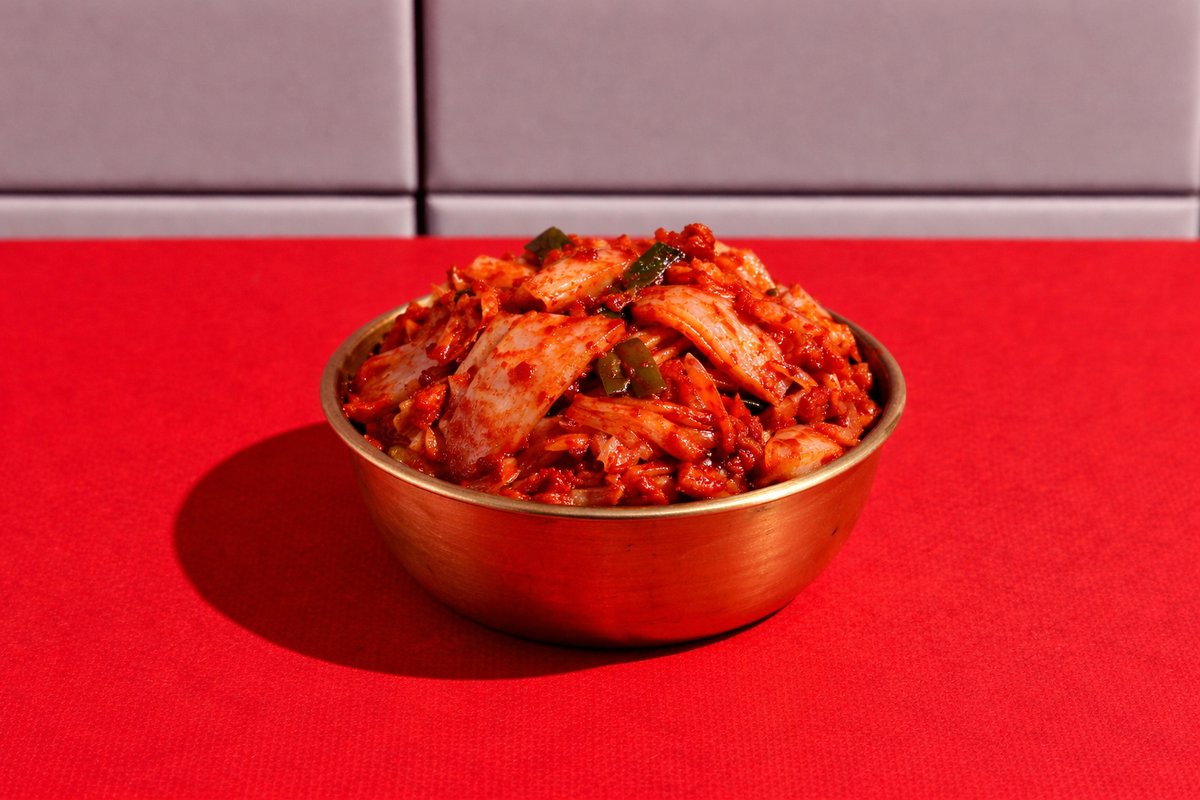 סלט קוריאני מסורתי המורכב מירקות מותססים ומתובלים; כרוב סיני, גזר, שום , ג'ינג'ר , בצל ירוק ואבקת גוג'יגארו