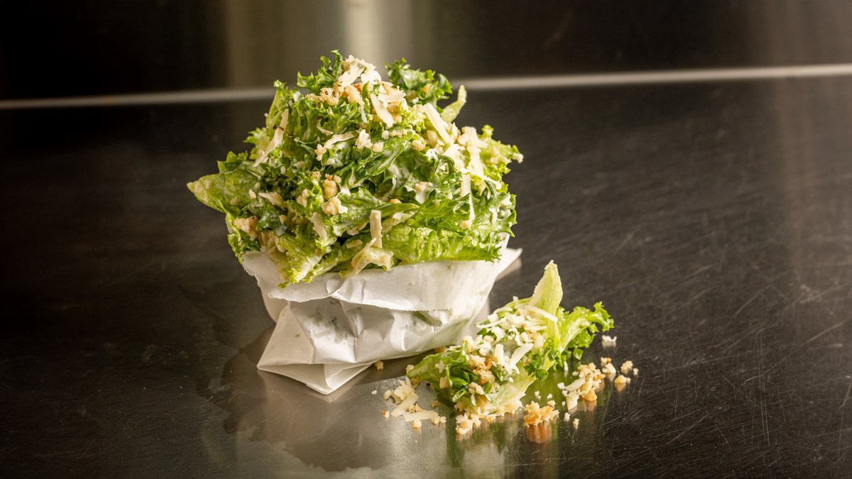 חסה לליק,רוטב קיסר,פרמזן,קורטונים
