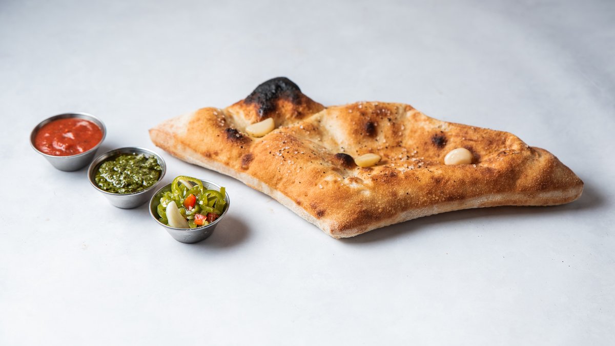 מוגש עם זיתים, שמן זית, חומץ בלסמי ורוטב פיצה