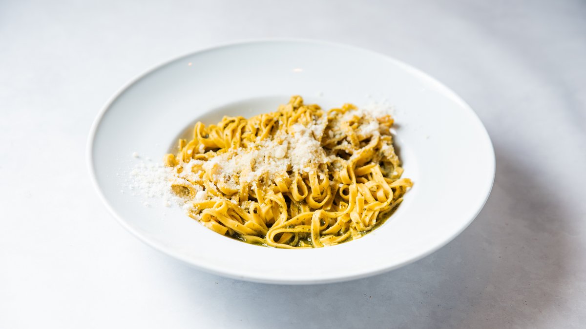 פסטה פפרדלה טרייה ברוטב קרם שמנת עשיר עם מעט אגוז מוסקט