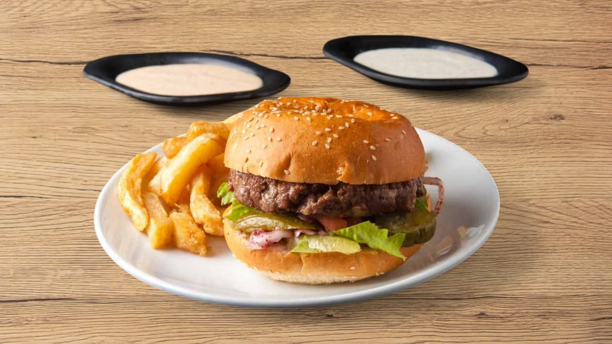 מוגש עם צ׳יפס, ירקות ורטבים לבחירה