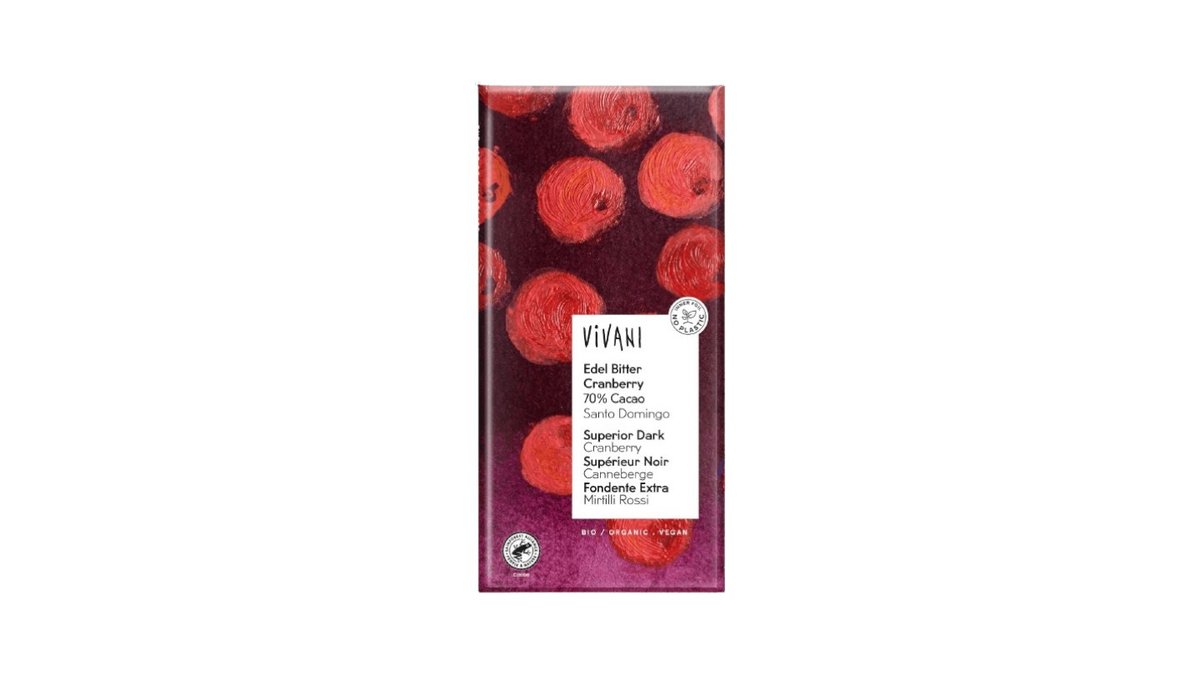 שוקולד מריר70% אורגני עם חמוציות |VIVANI