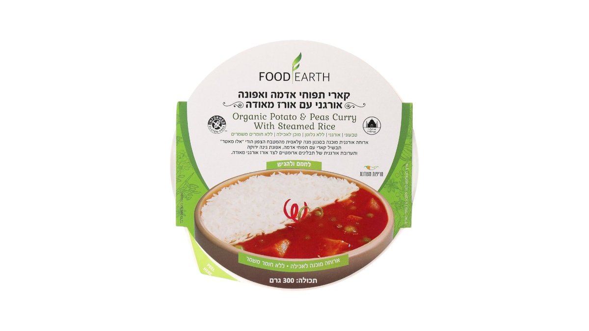 ארוחת קארי תפוחי אדמה ואפונה עם אורז מאודה אורגני | צ׳׳אנה מסאלה