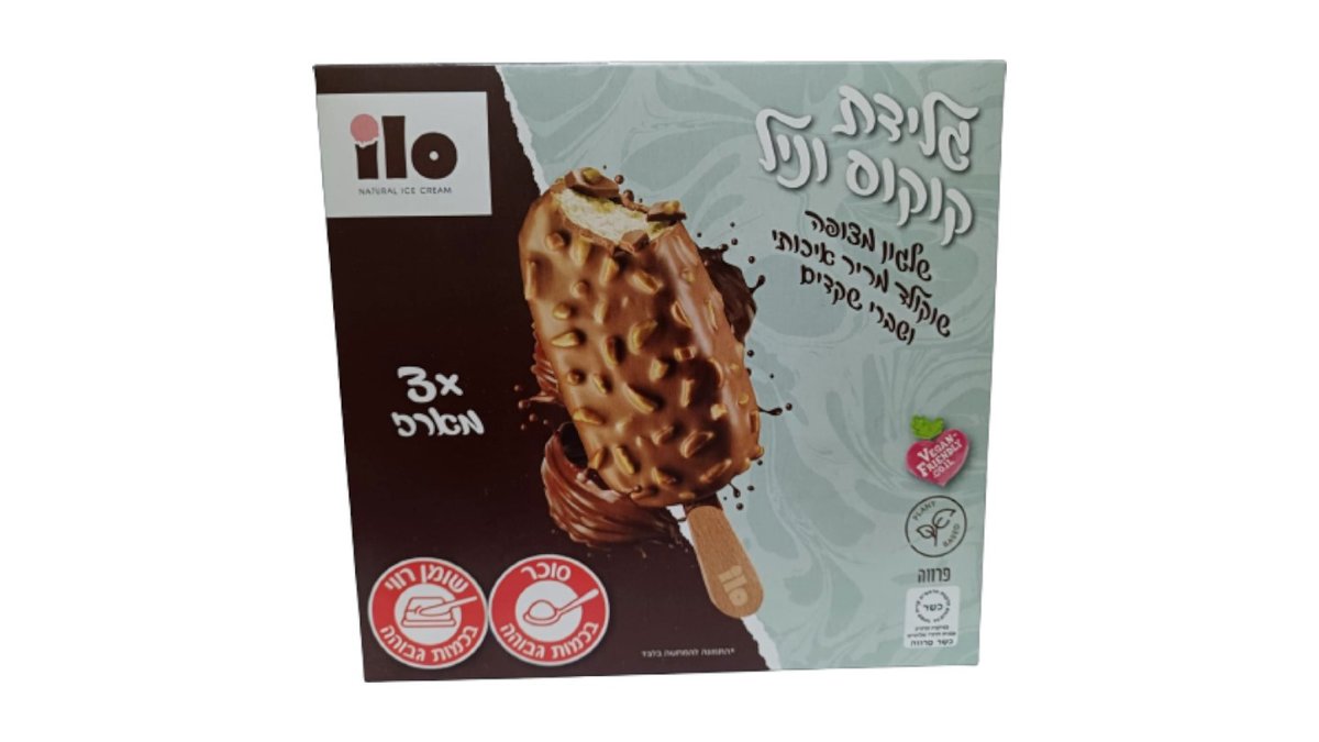 מארז 3 יח שלגון קוקוס וניל מצופה שוקולד מריר ושברי שקדים טבעוני - ILO