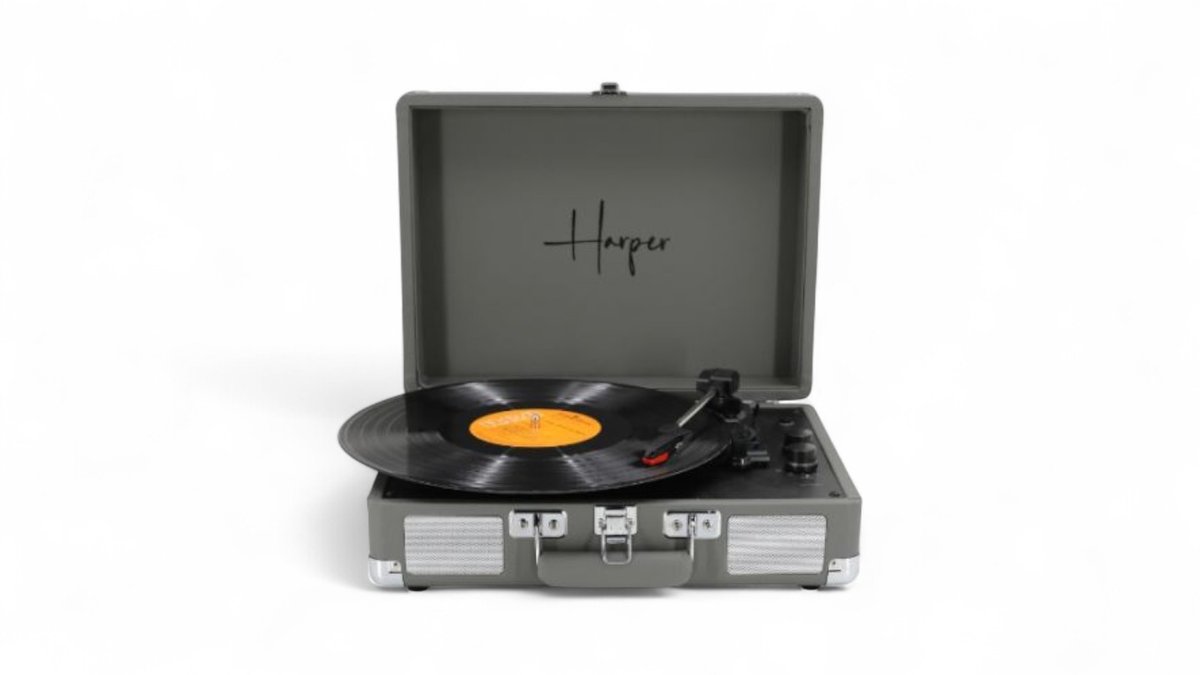 פטיפון מזוודה מעוצב HARPER דגם HRT10 גימור אפור