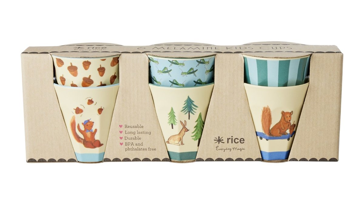 סט 6 כוסות מלמין מיני חיות יער אדום
