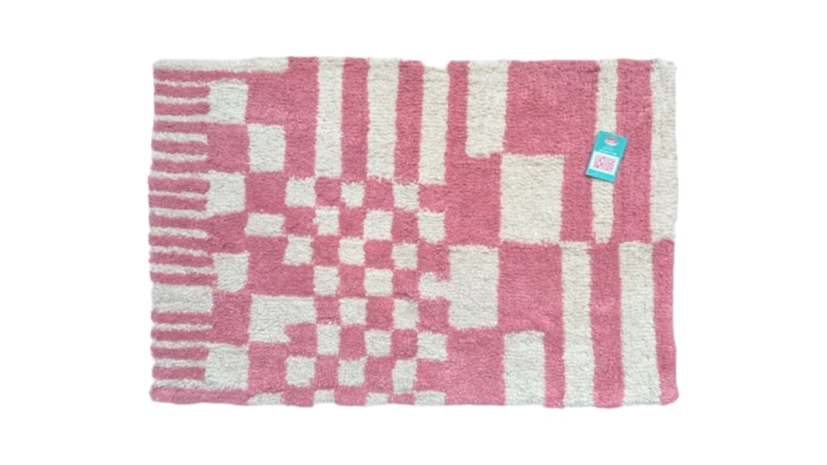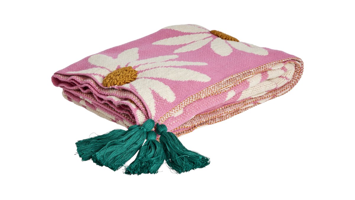 שמיכת כותנה סרוגה ורודה פרחים לבנים