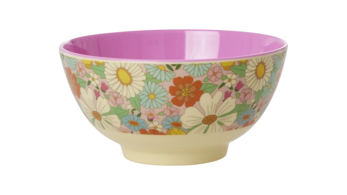 קערת מלמין פרחי אליסון רקע ורוד