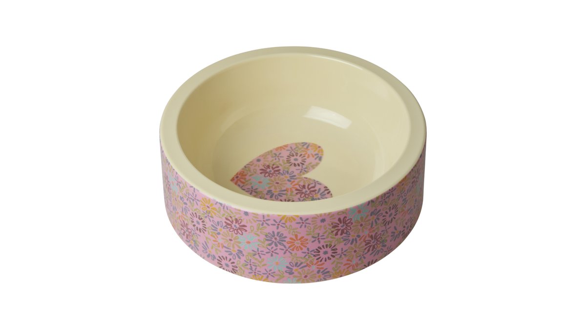 קערת מלמין לבעלי חיים - פרחים ולב