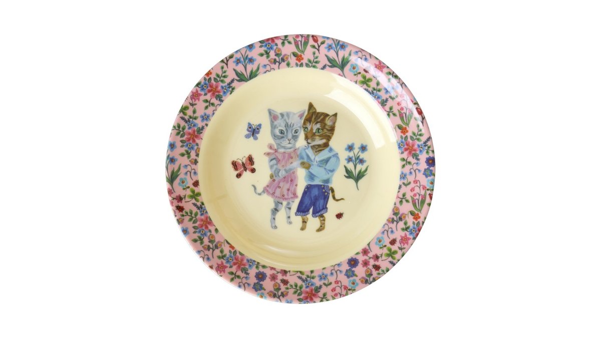 קערת מלמין לילדים - נטלי לאטה - זוג חתולים ומסגרת פרחים