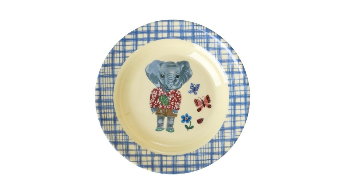 קערת מלמין לילדים - נטלי לאטה - פיל מסגרת כחול משובץ
