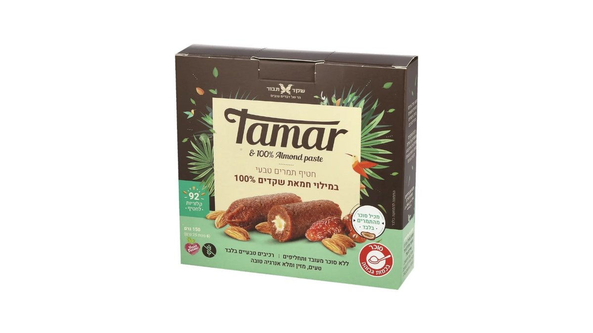 מארז חטיפי תמר במילוי חמאת שקדים בציפוי שוקולד 100% קקאו
