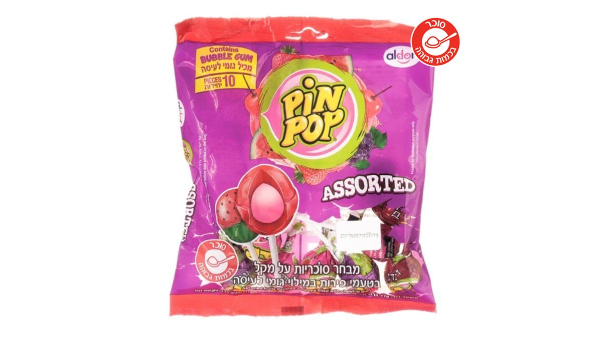 סוכריות על מקל פין פופ בטעמי פירות במילוי מסטיק