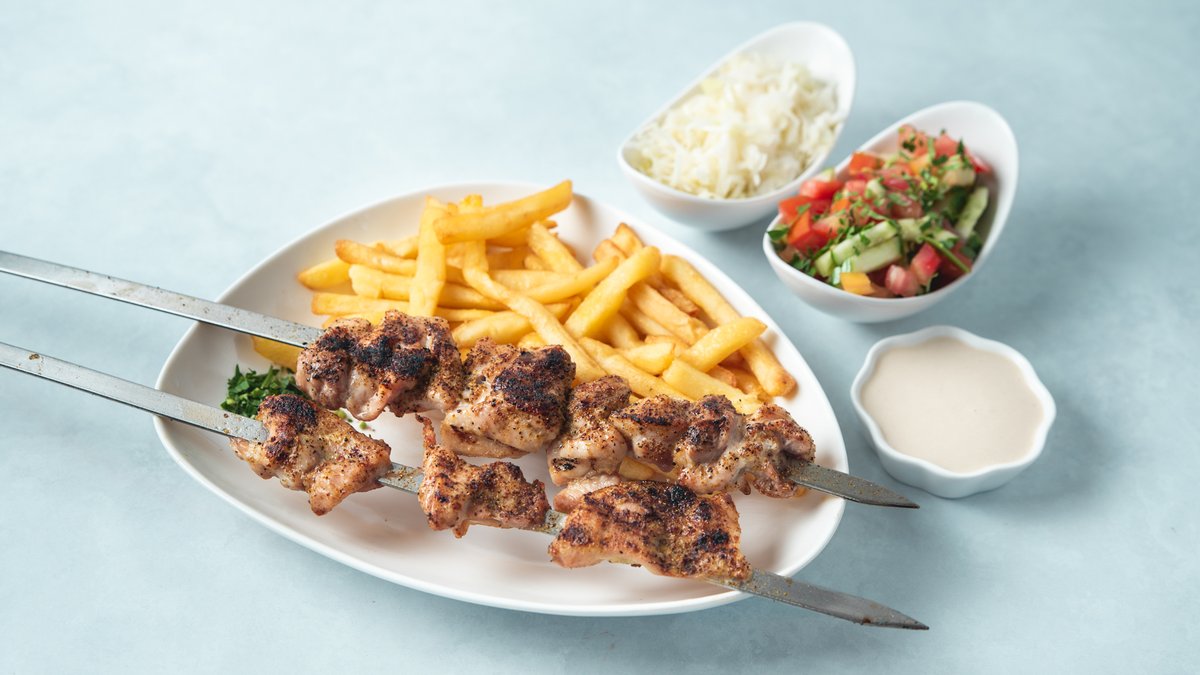 שיפודי פרגית | 2 יח׳ צורת הגשה, ממרחים וסלטים לבחירה