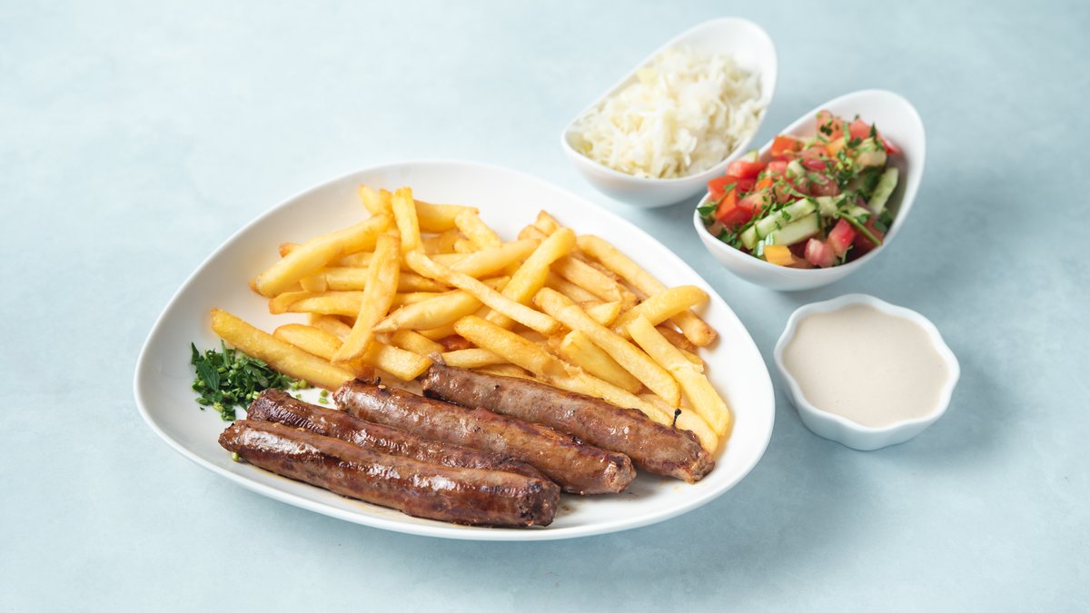 נקניקיות צ׳וריסוס | 2 יח׳ צורת הגשה, ממרחים וסלטים לבחירה