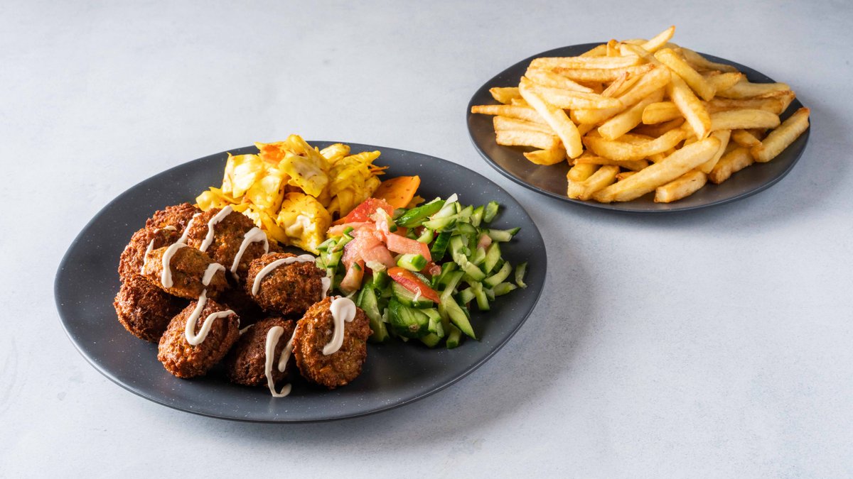 מוגש עם צ׳יפס, חמוצים וטחינה