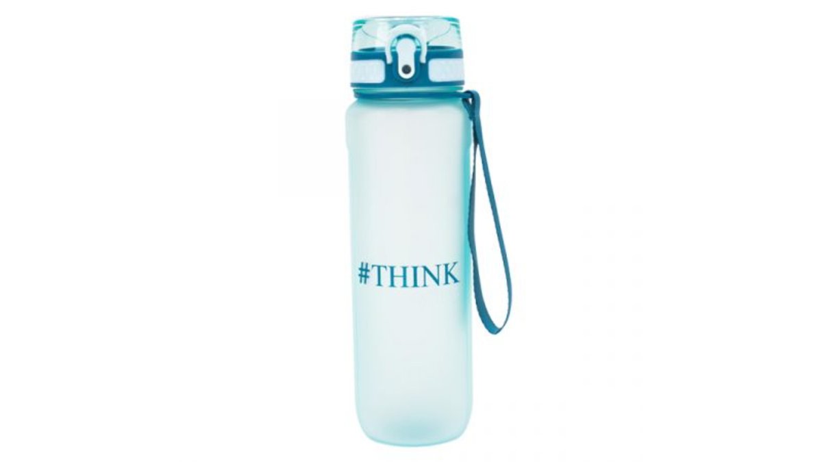 בקבוק שתיה ציפוי גומי ושרוך | תכלת | 900 מ״ל