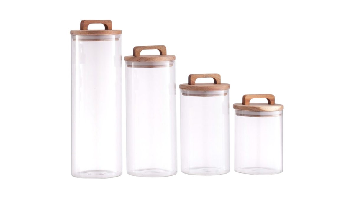צנצנת מאורכת עם מכסה במבוק 1 ליטר