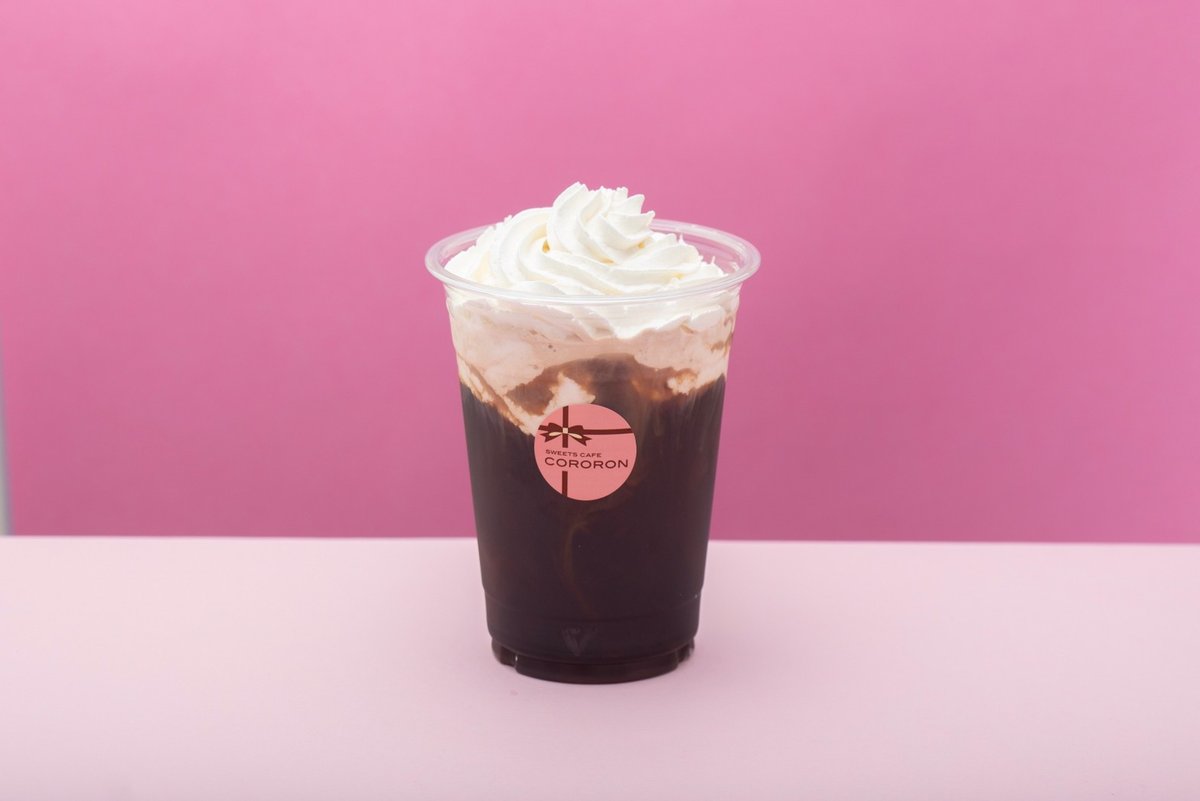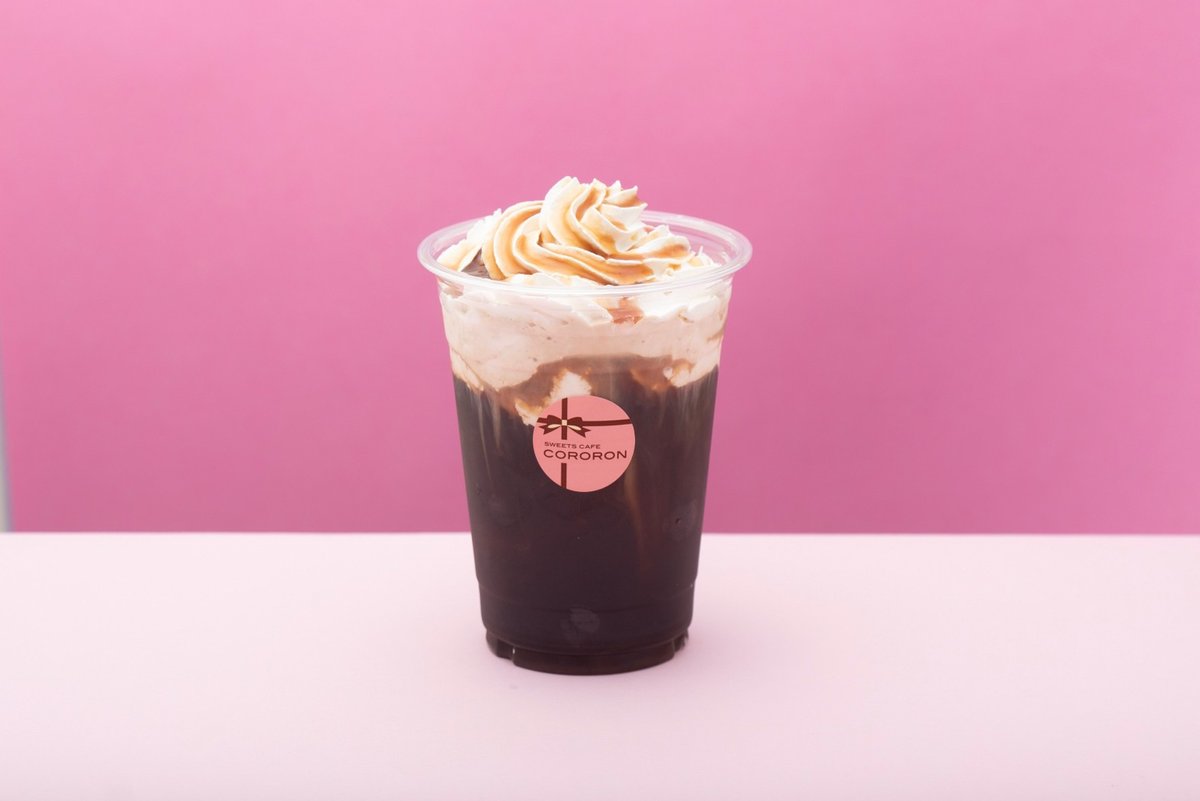 濃いめのコーヒーにたっぷりのホイップ、キャラメルソースがのってます!