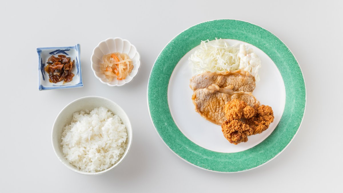 豚平焼きとザンギの組み合わせが食欲をそそります。