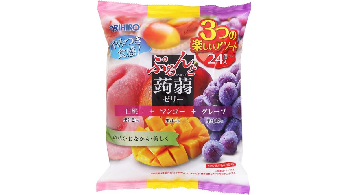 ぷるんと蒟蒻ゼリー 3つの楽しいアソート 白桃+マンゴー+グレープ | 480g