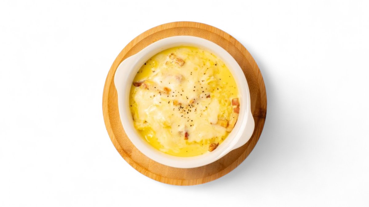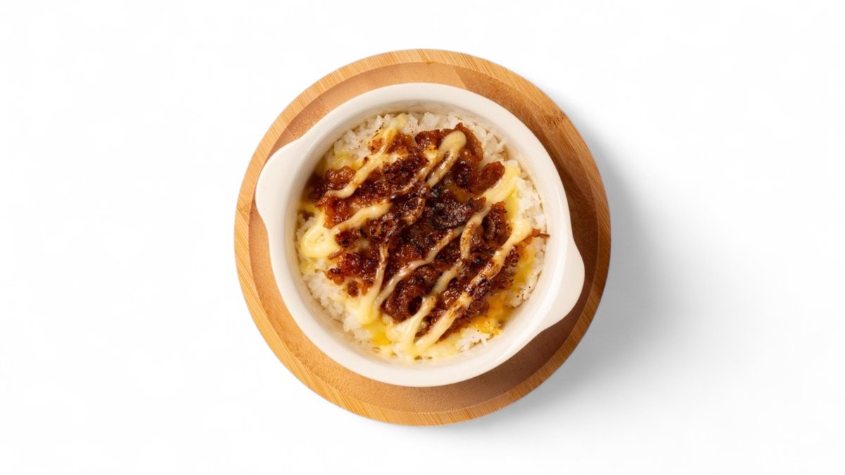 カルボナーラのソースは白米に合うことを証明した一品です。クリーミーなコクとチーズの旨みがごはんによく絡み、ひと口ごとに贅沢感が広がります。