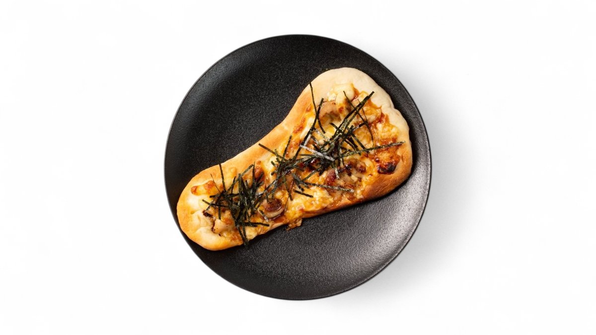 テリマヨソースとマヨネーズをかけたチキンナンピザです。チーズのコクと照り焼きの旨みが絶妙に重なり、ひと口ごとに満足感が広がります。