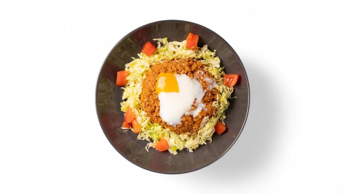 タコスの具材をのせた野菜もたっぷり取れるご飯です。旨みとコク、ほどよい辛さが絶妙に重なり、最後まで箸が止まらない美味しさです。