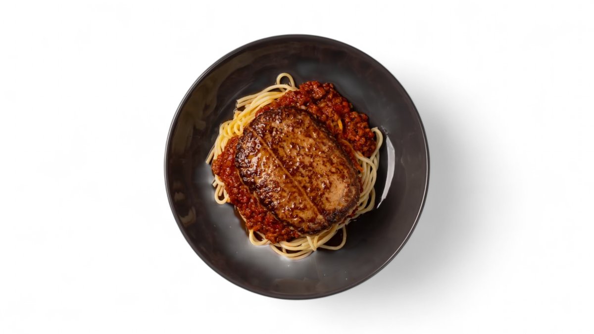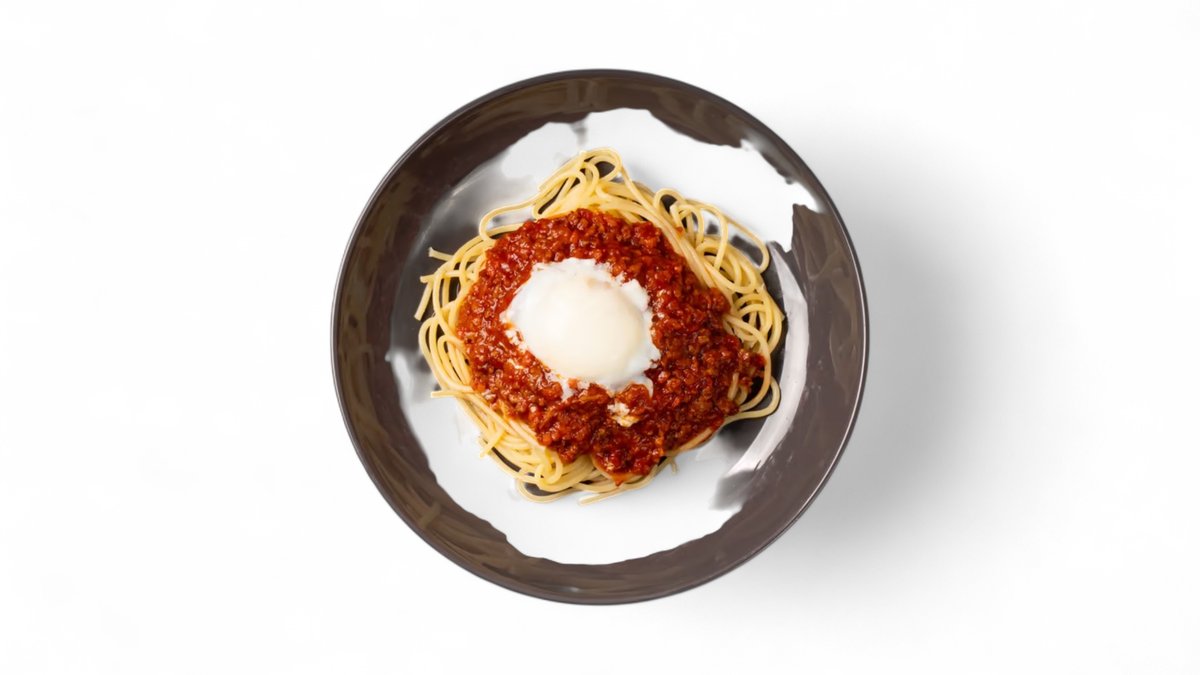 ハンバーグが乗ったボリュームたっぷりボロネーゼです。肉の旨みとミートソースの深いコクが絡み合い、一口ごとに満足感が広がります。