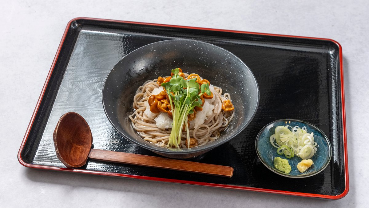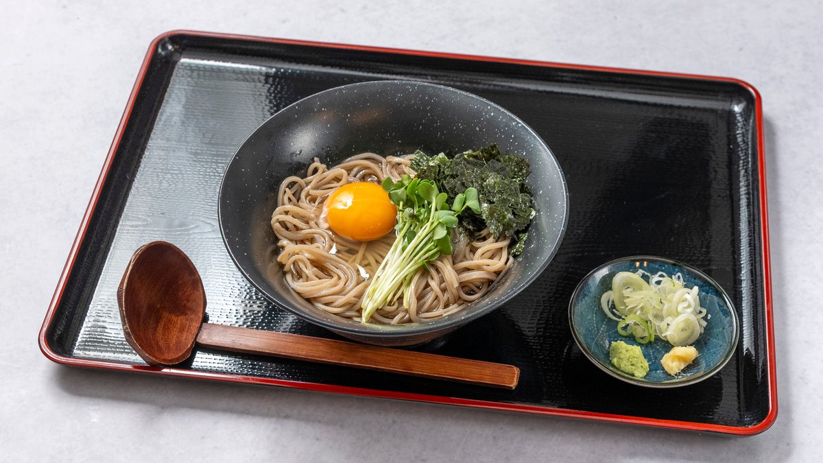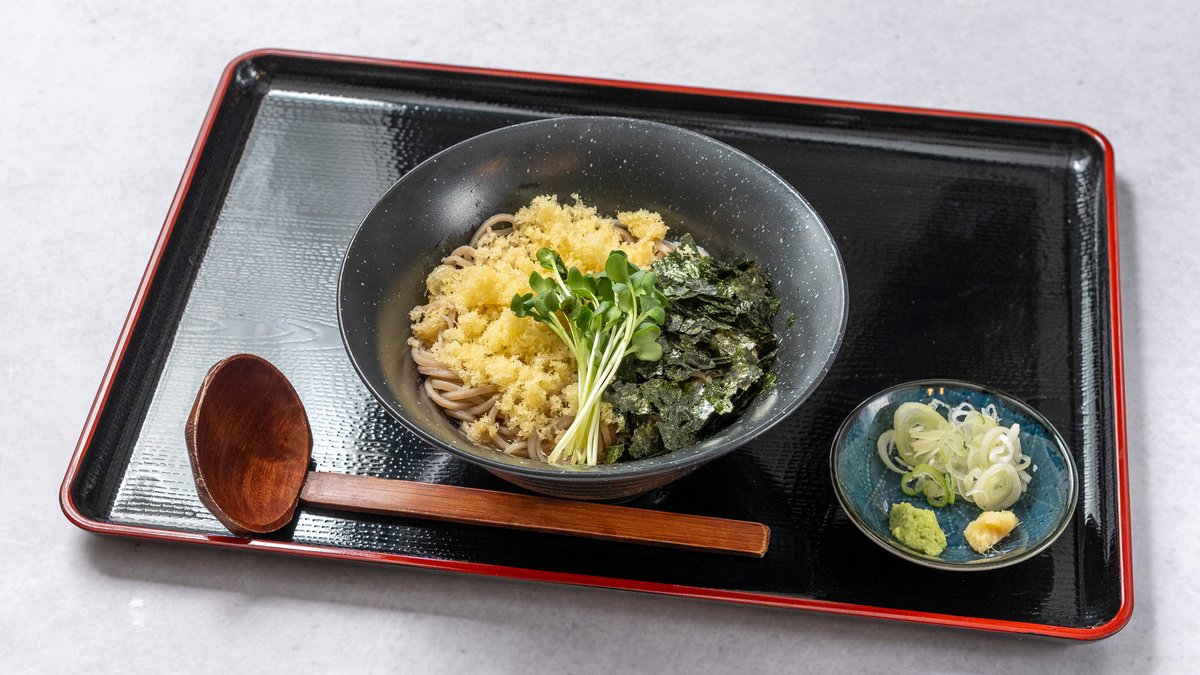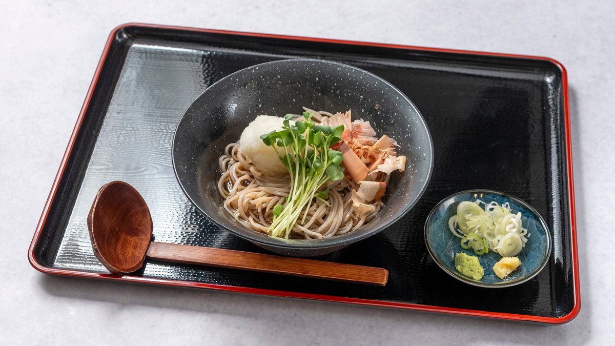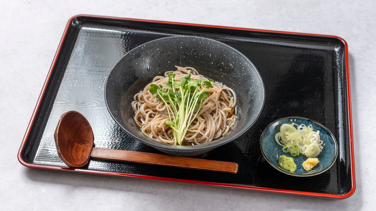 冷たいそばを特製のつゆにつけてお召し上がりいただく、さっぱりとした一品です。薬味と一緒にお楽しみください。