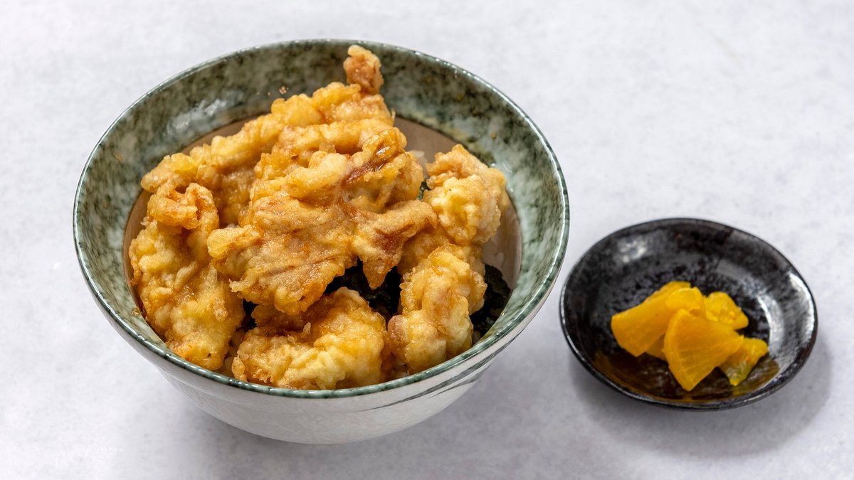 柔らかな鶏肉を天ぷらにし、特製の甘辛いタレとご飯にのせた一品です。ボリューム満点でおすすめです。